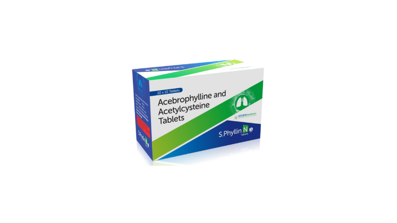 The acebrophylline and acetylcysteine tablets, available as S PHYLLIN N, are a trusted treatment for asthma, COPD, bronchitis, and other chronic respiratory conditions. With its dual action of mucus clearance and airway relaxation, it improves breathing, reduces cough, and enhances lung health.
