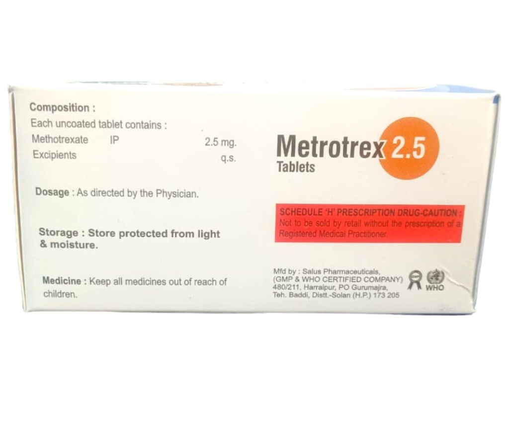 - Dosage: The dosage of METROTREX 2.5 should be strictly as prescribed by a healthcare provider, as it varies depending on the condition being treated.